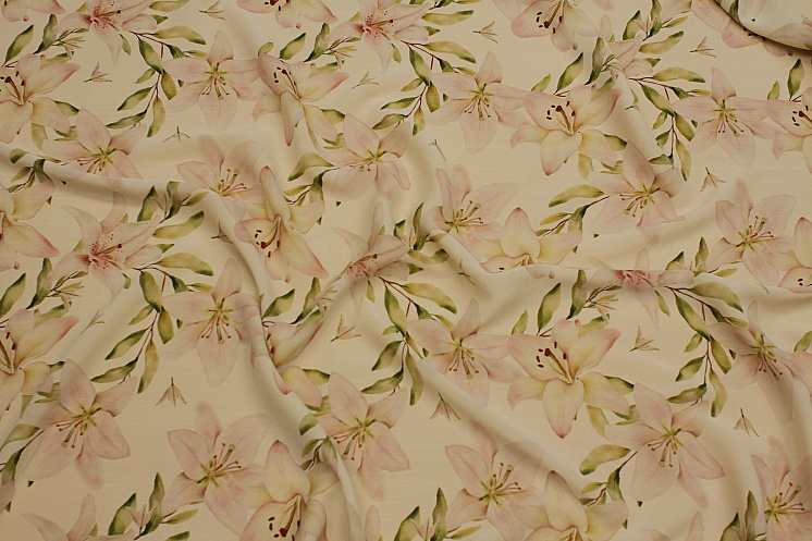 Шифон стрейч (н) лилии на бежевом Арт. 10-3337