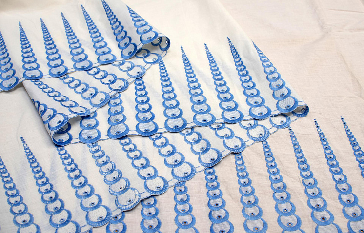 Шитье (н) голубая вышивка на айвори ш-80см - цена 800 ₽ У нас самые доступные цены на Шитье в Москве, доставка по всей России - интернет магазин тканей Тессутидея. Артикул товара для заказа - 01-5400. Страна производства ткани – Италия. Ширина этого материала - 80. Состав - Хлопок 100%. Наличие остатков на складе - 3.2 м