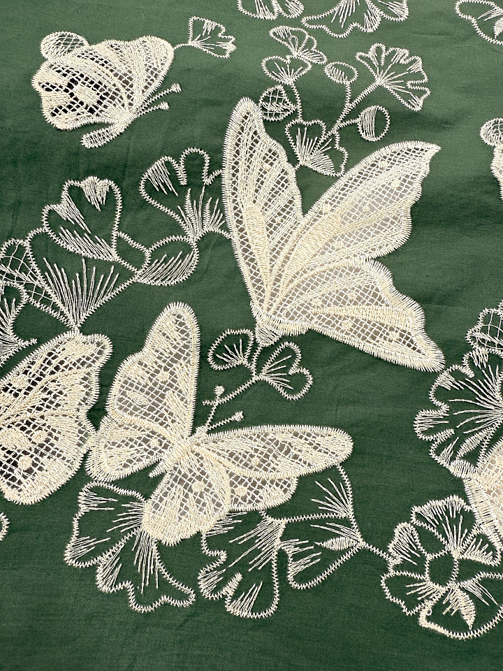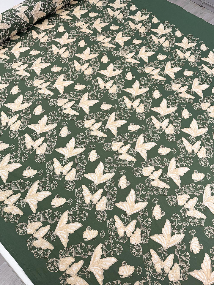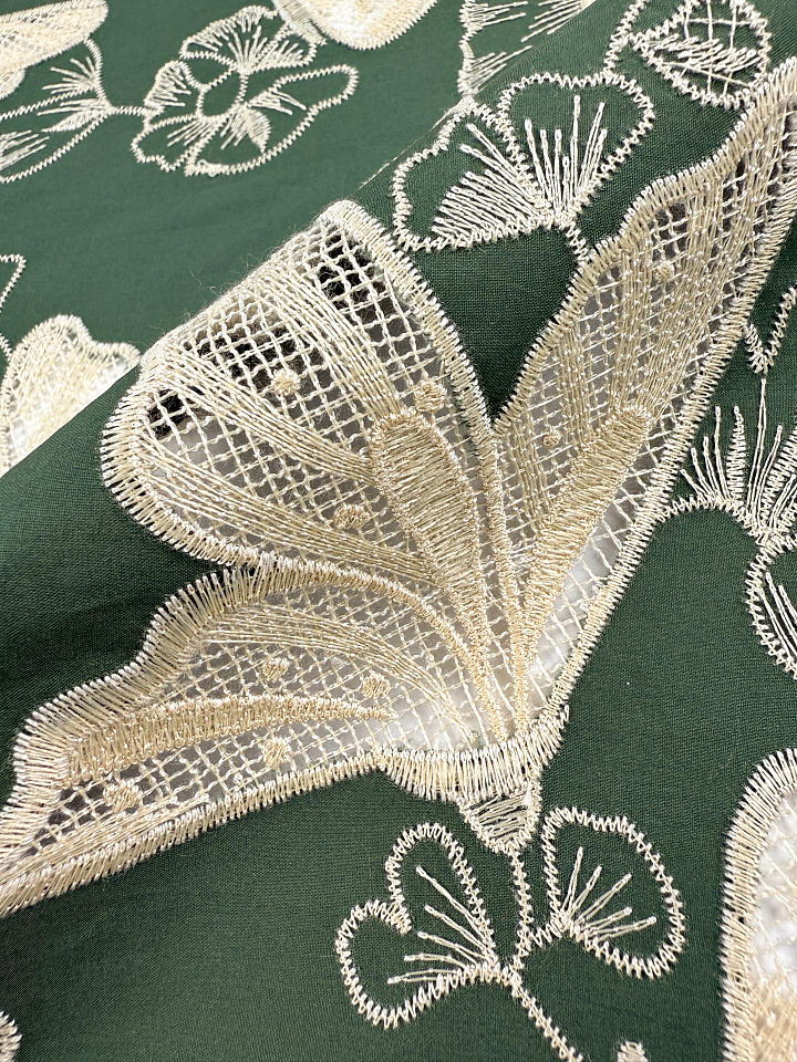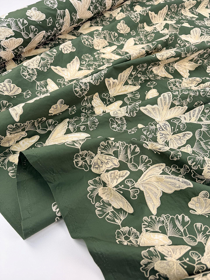 Шитье (н) светло-бежевая вышивка на зеленом - цена 6 500 ₽ У нас самые доступные цены на в Москве, доставка по всей России - интернет магазин тканей Тессутидея. Артикул товара для заказа - 01-8112. Страна производства ткани – Италия. Ширина этого материала - 145. Состав - Хлопок 100%. Наличие остатков на складе - 8.4 м
