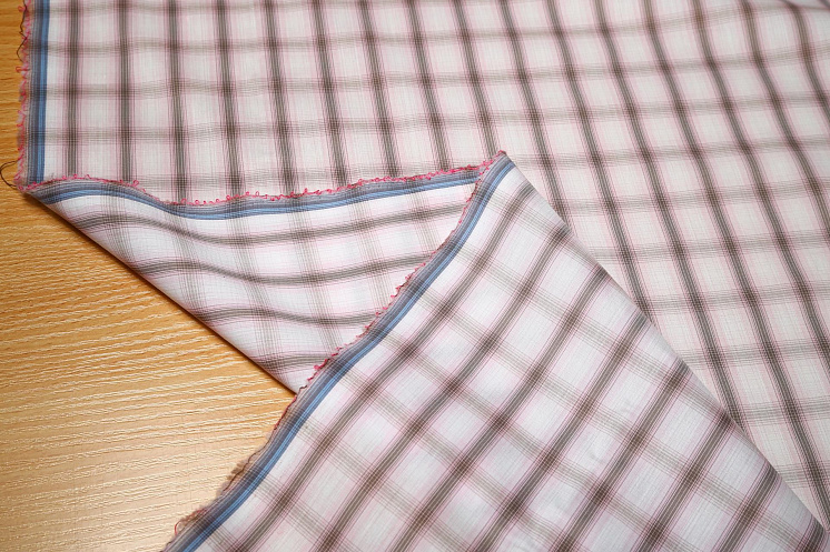 Сорочечная клетка стрейч (н) коричнево-бело-розовая - цена 1 350 ₽ У нас самые доступные цены на Сорочечные ткани в Москве, доставка по всей России - интернет магазин тканей Тессутидея. Артикул товара для заказа - 01-3485. Страна производства ткани – Италия. Ширина этого материала - 140. Состав - Хлопок 97% эластан 3%. Наличие остатков на складе - 6.7 м