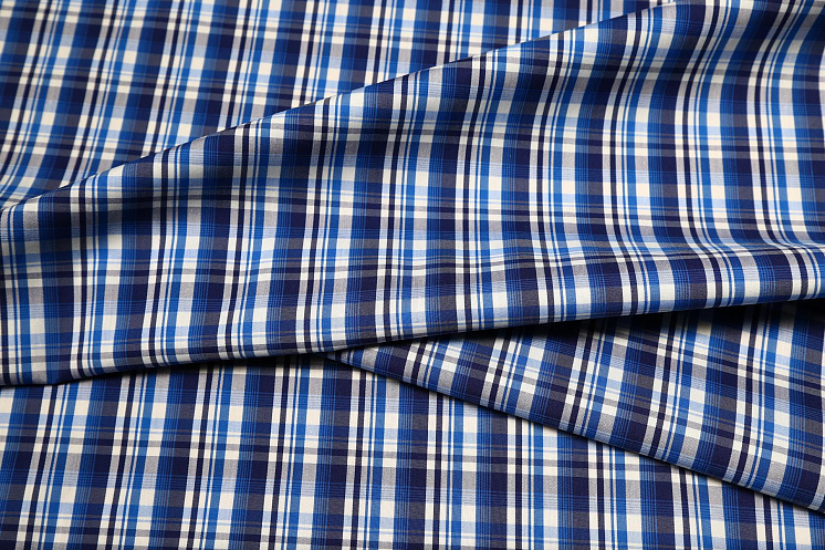 Сорочечная клетка стрейч (н) сине-белая - цена 1 350 ₽ У нас самые доступные цены на в Москве, доставка по всей России - интернет магазин тканей Тессутидея. Артикул товара для заказа - 01-3487. Страна производства ткани – Италия. Ширина этого материала - 150. Состав - Хлопок 97% эластан 3%. Наличие остатков на складе - 1.35 м