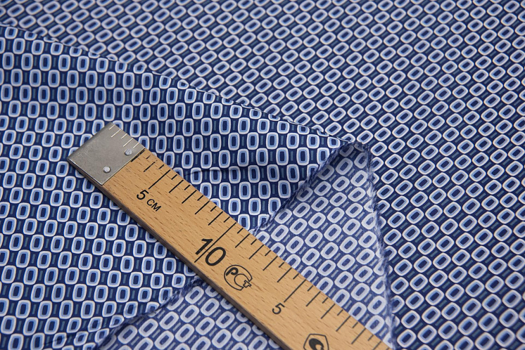 Сорочечная (н) бело-голубой геометрический принт на синем - цена 1 200 ₽ У нас самые доступные цены на Сорочечные ткани в Москве, доставка по всей России - интернет магазин тканей Тессутидея. Артикул товара для заказа - 01-6280. Страна производства ткани – Италия. Ширина этого материала - 150. Состав - Хлопок 100%. Наличие остатков на складе - 7.55 м