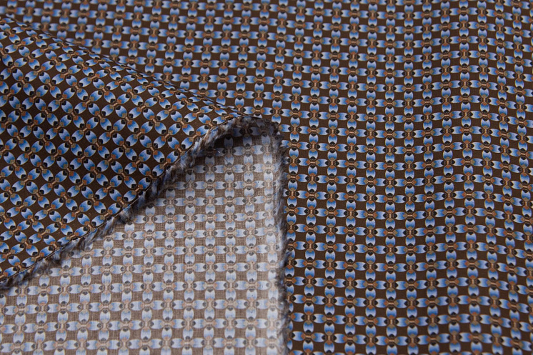 Сорочечная (н) бежево-голубой рисунок на коричневом - цена 1 200 ₽ У нас самые доступные цены на Сорочечные ткани в Москве, доставка по всей России - интернет магазин тканей Тессутидея. Артикул товара для заказа - 01-6168. Страна производства ткани – Италия. Ширина этого материала - 150. Состав - Хлопок 100%. Наличие остатков на складе - 6.6 м