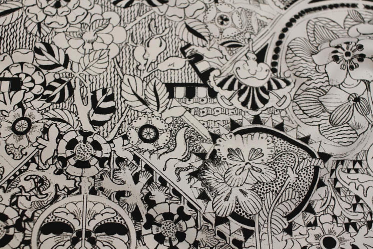 Сорочечная (н) черно-белый цветочно-геометрический рисунок Арт. 01-7786