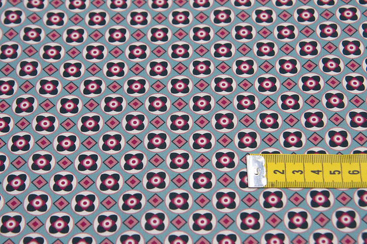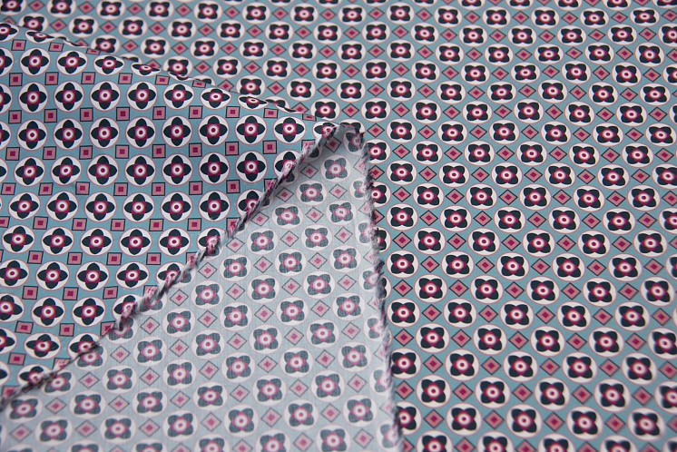 Сорочечная (н) черно-малиновый принт на бирюзовом - цена 1 200 ₽ У нас самые доступные цены на Сорочечные ткани в Москве, доставка по всей России - интернет магазин тканей Тессутидея. Артикул товара для заказа - 01-6154. Страна производства ткани – Италия. Ширина этого материала - 150. Состав - Хлопок 100%. Наличие остатков на складе - 1.85 м