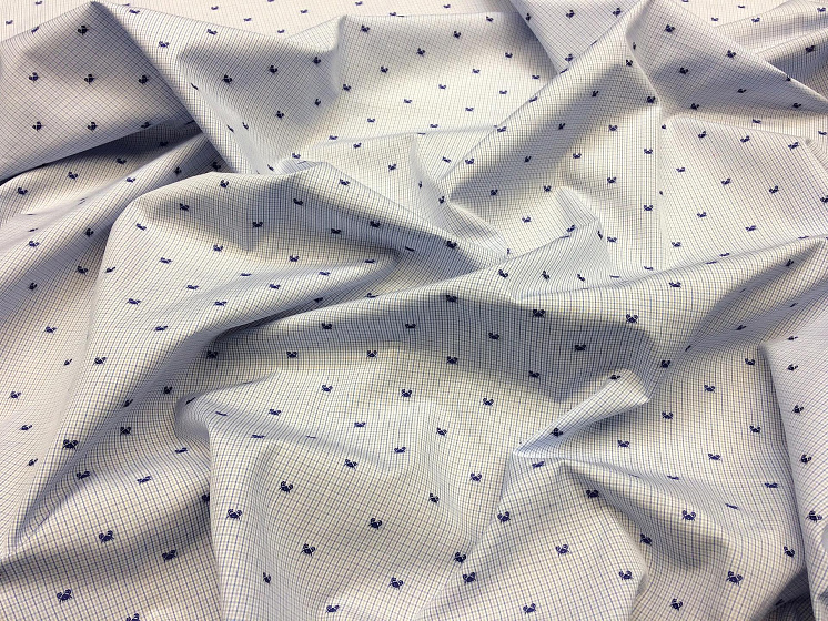 Сорочечная (н) мелкий синий орнамент на бело-голубой клетке - цена 1 400 ₽ У нас самые доступные цены на Сорочечные ткани в Москве, доставка по всей России - интернет магазин тканей Тессутидея. Артикул товара для заказа - 01-4389. Страна производства ткани – Италия. Ширина этого материала - 160. Состав - Хлопок 100%. Наличие остатков на складе - 1.7 м