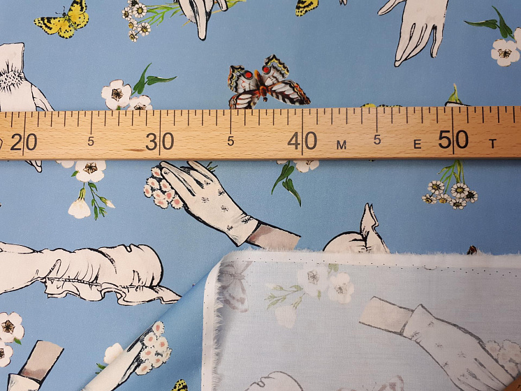 Сорочечная (н) орнамент из перчаток и бабочек на голубом в стиле Vivetta - цена 1 900 ₽ У нас самые доступные цены на Сорочечные ткани в Москве, доставка по всей России - интернет магазин тканей Тессутидея. Артикул товара для заказа - 01-4940. Страна производства ткани – Италия. Ширина этого материала - 150. Состав - Хлопок 100%. Наличие остатков на складе - 5.3 м