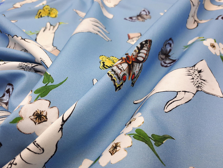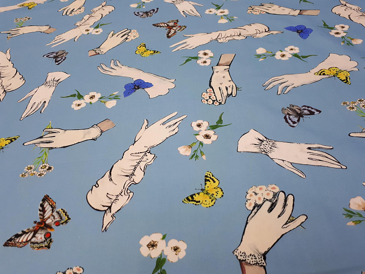 Сорочечная (н) орнамент из перчаток и бабочек на голубом в стиле Vivetta Арт. 01-4940
