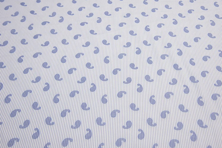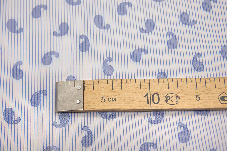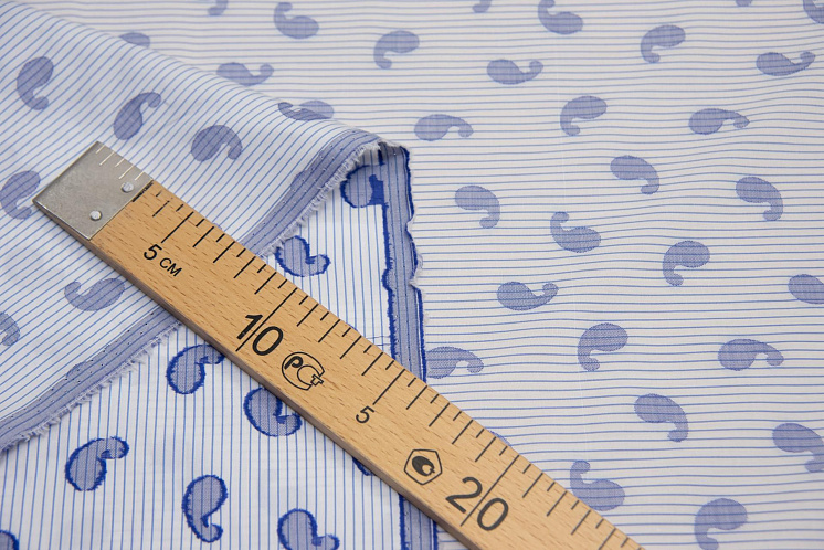 Сорочечная (н) пейсли на бело-голубой полоске - цена 1 400 ₽ У нас самые доступные цены на Сорочечные ткани в Москве, доставка по всей России - интернет магазин тканей Тессутидея. Артикул товара для заказа - 01-6147. Страна производства ткани – Италия. Ширина этого материала - 150. Состав - Хлопок 100%. Наличие остатков на складе - 3.4 м