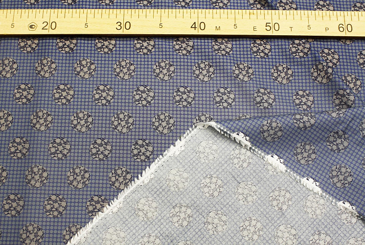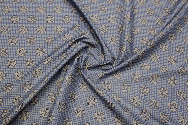 Сорочечная (н) сине-серый стилизованный горох на светло-синем - цена 1 500 ₽ У нас самые доступные цены на Сорочечные ткани в Москве, доставка по всей России - интернет магазин тканей Тессутидея. Артикул товара для заказа - 01-7402. Страна производства ткани – Италия. Ширина этого материала - 140. Состав - Хлопок 100%. Наличие остатков на складе - 9.5 м
