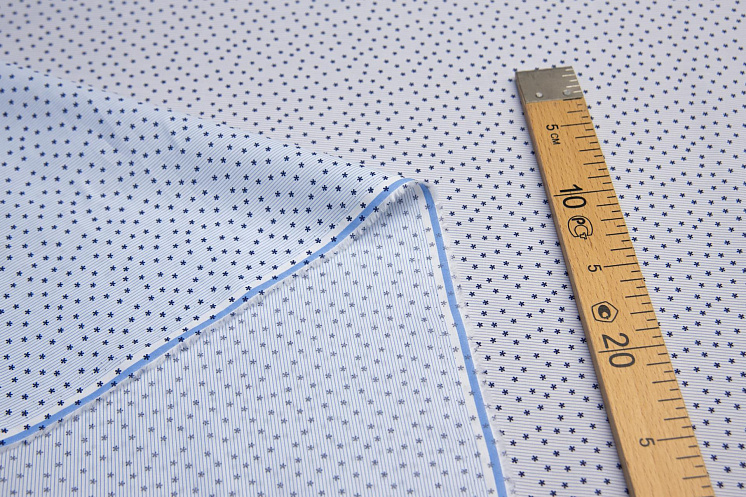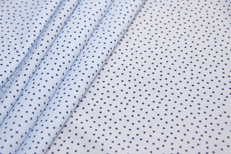 Сорочечная (н) синие цветы на бело-голубой полоске - цена 1 200 ₽ У нас самые доступные цены на в Москве, доставка по всей России - интернет магазин тканей Тессутидея. Артикул товара для заказа - 01-5693. Страна производства ткани – Италия. Ширина этого материала - 155. Состав - Хлопок 100%. Наличие остатков на складе - 2.6 м