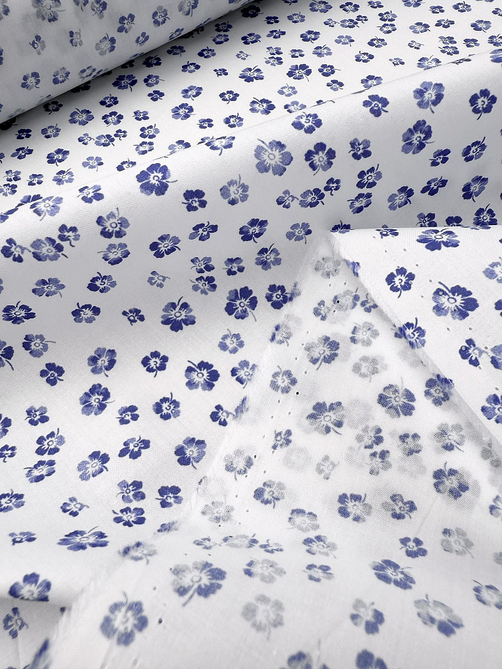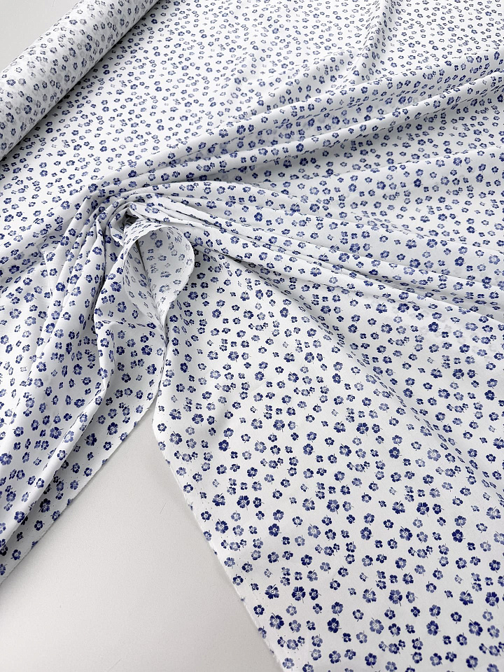 Сорочечная (н) синий цветочный рисунок на белом - цена 1 200 ₽ У нас самые доступные цены на Сорочечные ткани в Москве, доставка по всей России - интернет магазин тканей Тессутидея. Артикул товара для заказа - 01-8023. Страна производства ткани – Италия. Ширина этого материала - 150. Состав - Хлопок 100%. Наличие остатков на складе - 7.5 м