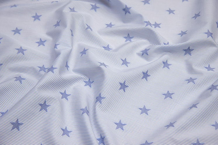 Сорочечная (н) звезды на бело-голубой полоске - цена 1 400 ₽ У нас самые доступные цены на Сорочечные ткани в Москве, доставка по всей России - интернет магазин тканей Тессутидея. Артикул товара для заказа - 01-6145. Страна производства ткани – Италия. Ширина этого материала - 150. Состав - Хлопок 100%. Наличие остатков на складе - 3.3 м