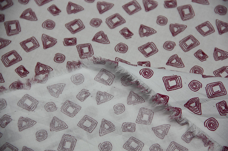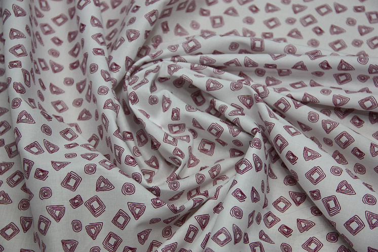Сорочечная стрейч (н) бордовый геометрический орнамент на белом ш-150см Арт. 01-3381
