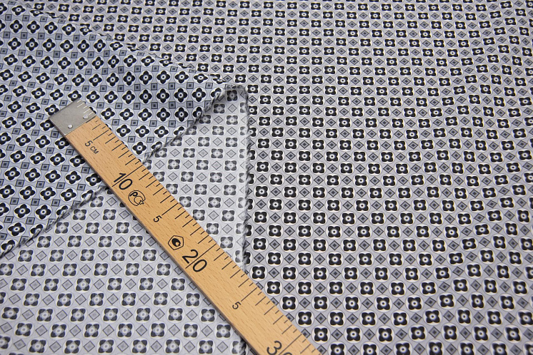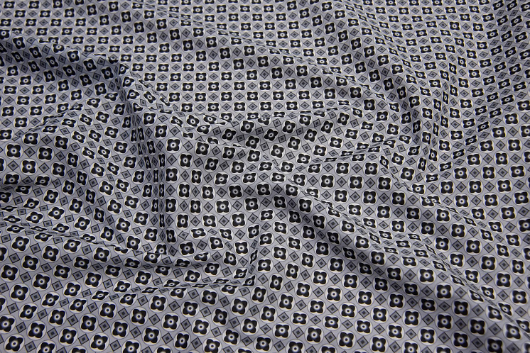 Сорочечная стрейч (н) черно-белый принт на сером - цена 1 200 ₽ У нас самые доступные цены на Сорочечные ткани в Москве, доставка по всей России - интернет магазин тканей Тессутидея. Артикул товара для заказа - 01-6161. Страна производства ткани – Италия. Ширина этого материала - 150. Состав - Хлопок 98% эластан 2%. Наличие остатков на складе - 15.1 м