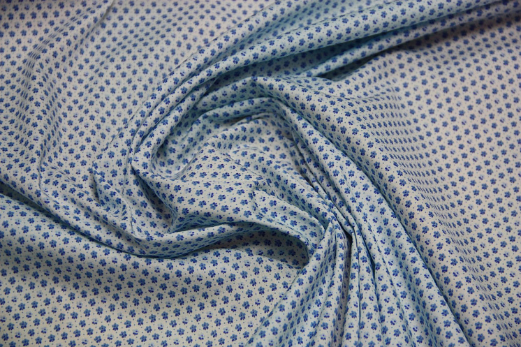 Сорочечная стрейч (н) мелкий синий цветочный орнамент на голубом - цена 1 500 ₽ У нас самые доступные цены на Сорочечные ткани в Москве, доставка по всей России - интернет магазин тканей Тессутидея. Артикул товара для заказа - 01-3086. Страна производства ткани – Италия. Ширина этого материала - 140. Состав - Хлопок 96% эластан 4%. Наличие остатков на складе - 8.2 м