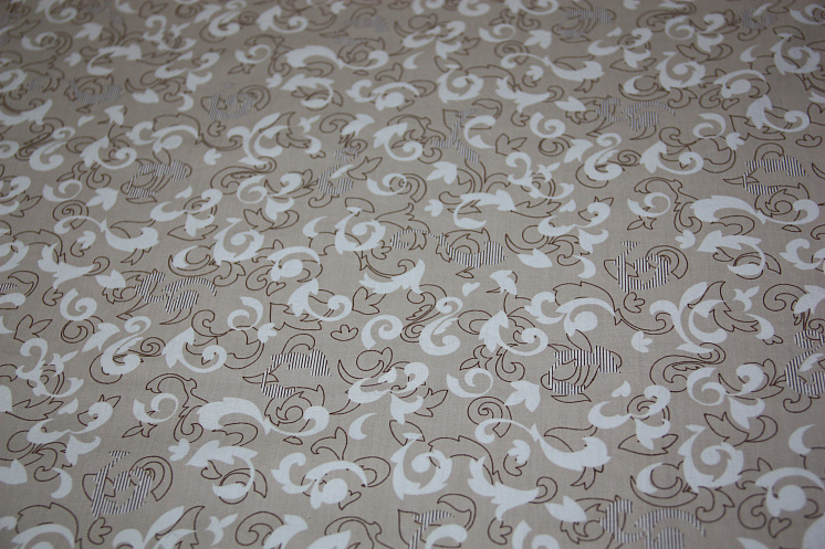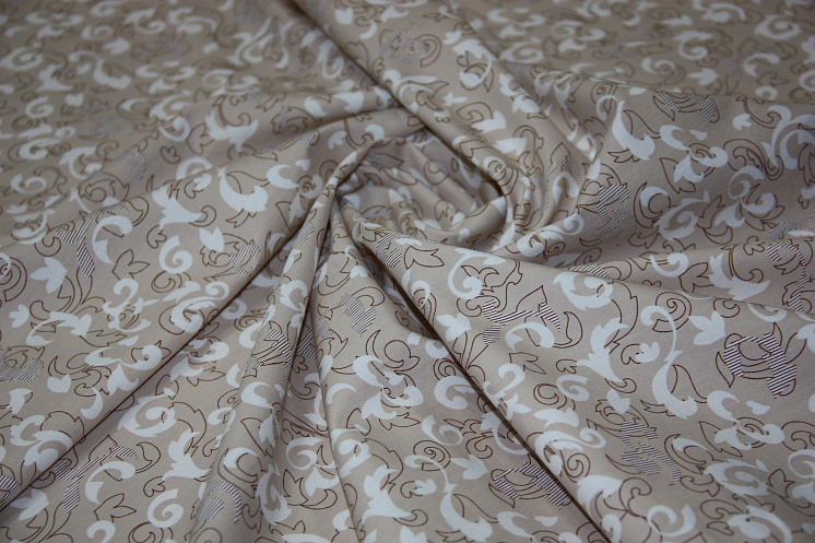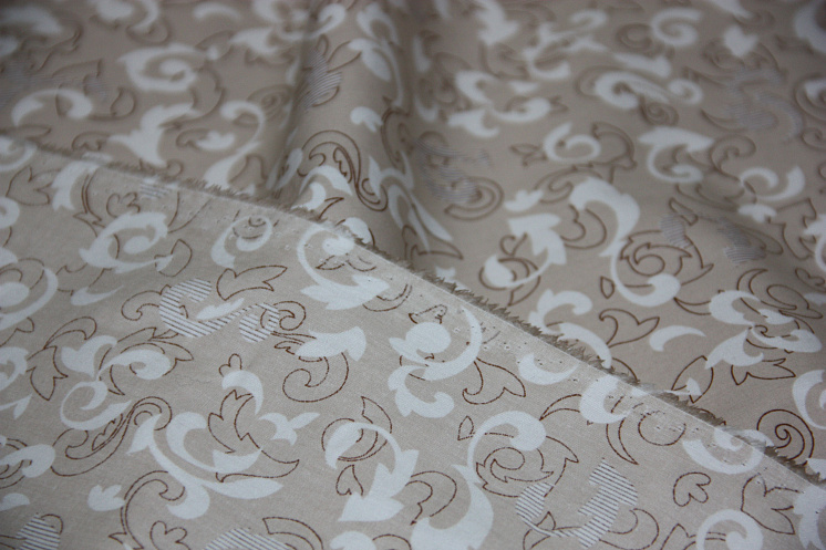 Сорочечная стрейч (н) растительный орнамент на бежевом ш-150см Арт. 01-3336