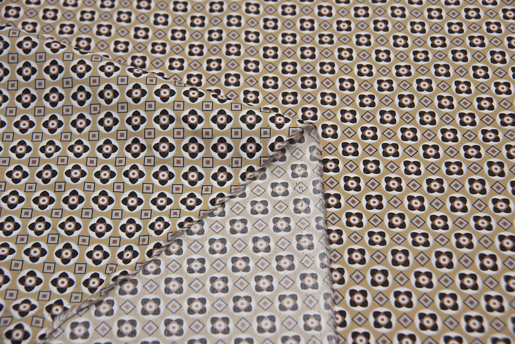 Сорочечная стрейч (н) серо-коричневый принт на бежевом - цена 1 200 ₽ У нас самые доступные цены на Сорочечные ткани в Москве, доставка по всей России - интернет магазин тканей Тессутидея. Артикул товара для заказа - 01-6193. Страна производства ткани – Италия. Ширина этого материала - 150. Состав - Хлопок 98% эластан 2%. Наличие остатков на складе - 2.25 м