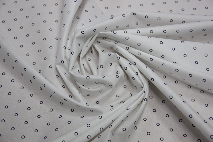 Сорочечная стрейч (н) синие колечки на белом ш-150см - цена 1 200 ₽ У нас самые доступные цены на Сорочечные ткани в Москве, доставка по всей России - интернет магазин тканей Тессутидея. Артикул товара для заказа - 01-3384. Страна производства ткани – Италия. Ширина этого материала - 150. Состав - Хлопок 97% эластан 3%. Наличие остатков на складе - 5.8 м