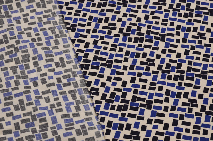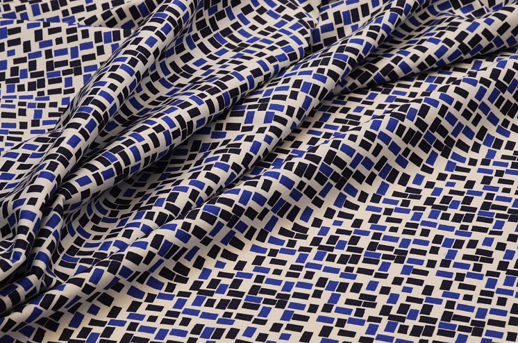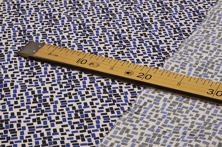Сорочечная стрейч (н) синий геометрический орнамент на белом - цена 1 200 ₽ У нас самые доступные цены на Сорочечные ткани в Москве, доставка по всей России - интернет магазин тканей Тессутидея. Артикул товара для заказа - 01-4129. Страна производства ткани – Италия. Ширина этого материала - 150. Состав - Хлопок 96% эластан 4%. Наличие остатков на складе - 4.3 м