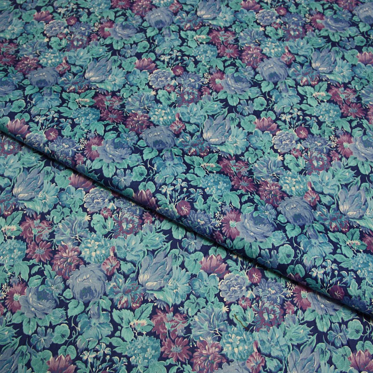 Сорочечная стрейч (н) сиренево-голубой цветочный орнамент на синем ш-85см Арт. 01-3194