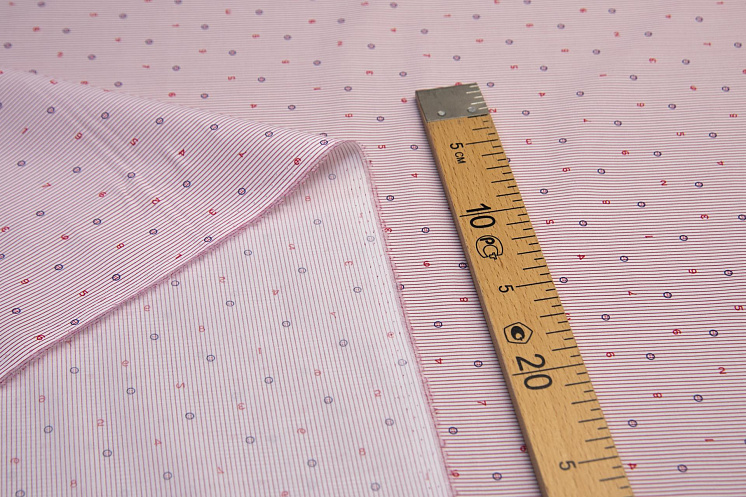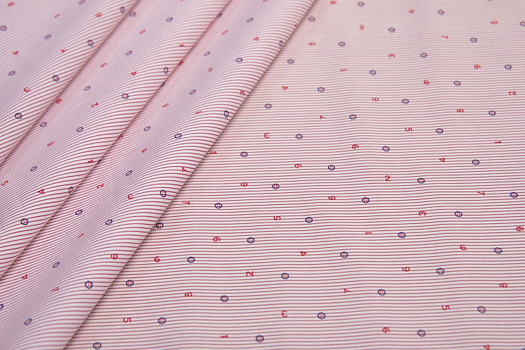 Сорочечная стрейч (н) цифры на красно-белой полоске - цена 1 200 ₽ У нас самые доступные цены на в Москве, доставка по всей России - интернет магазин тканей Тессутидея. Артикул товара для заказа - 01-5670. Страна производства ткани – Италия. Ширина этого материала - 145. Состав - Хлопок 97% эластан 3%. Наличие остатков на складе - 4 м