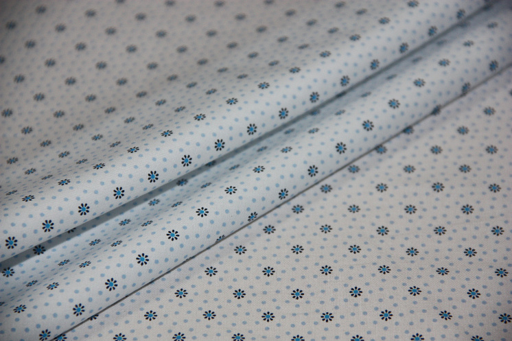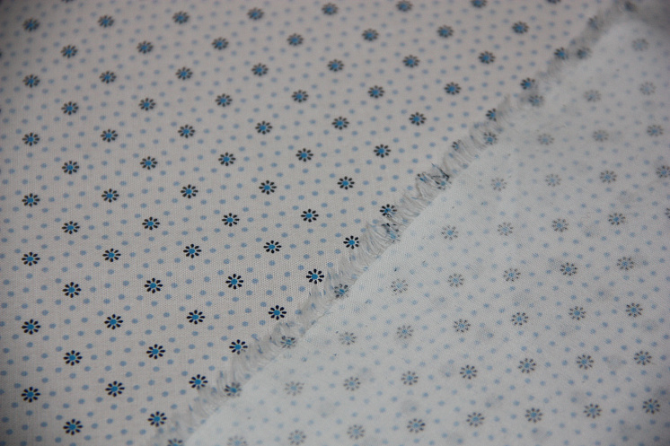 Сорочечная стрейч (н) цветы и голубой горох на белом ш-150см - цена 1 250 ₽ У нас самые доступные цены на Сорочечные ткани в Москве, доставка по всей России - интернет магазин тканей Тессутидея. Артикул товара для заказа - 01-3357. Страна производства ткани – Италия. Ширина этого материала - 150. Состав - Хлопок 97% эластан 3%. Наличие остатков на складе - 5.8 м