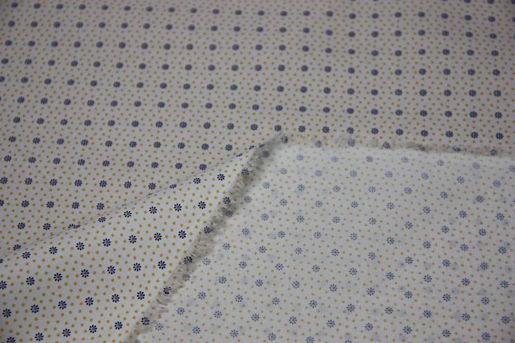 Сорочечная стрейч (н) цветы и желтый горох на белом ш-150см - цена 1 250 ₽ У нас самые доступные цены на Сорочечные ткани в Москве, доставка по всей России - интернет магазин тканей Тессутидея. Артикул товара для заказа - 01-3356. Страна производства ткани – Италия. Ширина этого материала - 150. Состав - Хлопок 97% эластан 3%. Наличие остатков на складе - 9.1 м