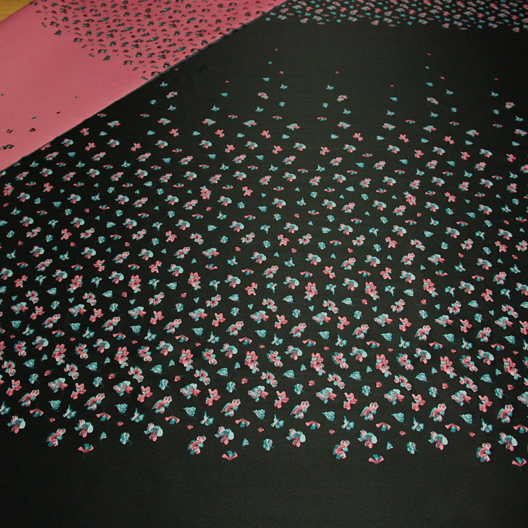 Тафта купон (0,95м) double (н) мелкий цветочный орнамент на черно-розовом Арт. 03-2754