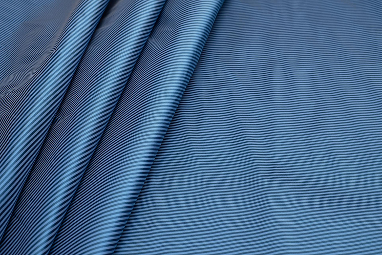Тафта (н) черно-голубая полоска - цена 2 400 ₽ У нас самые доступные цены на Тафта, шантунг, муслин в Москве, доставка по всей России - интернет магазин тканей Тессутидея. Артикул товара для заказа - 10-0730. Страна производства ткани – Италия. Ширина этого материала - 145. Состав - Шелк 100%. Наличие остатков на складе - 4.2 м