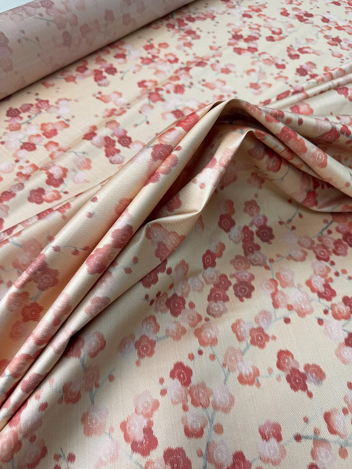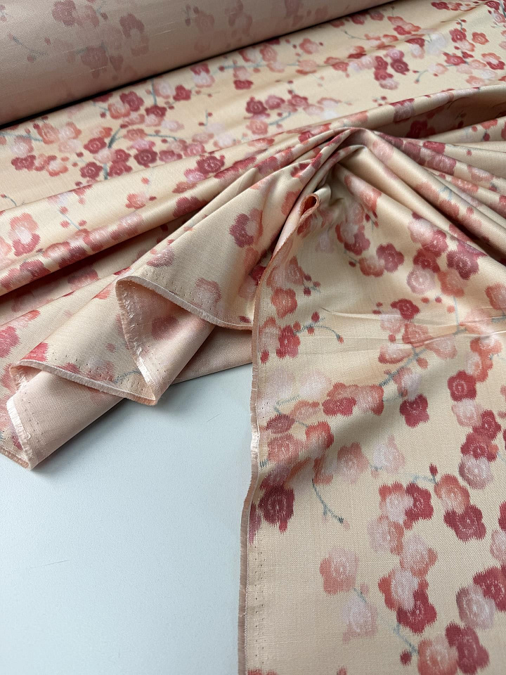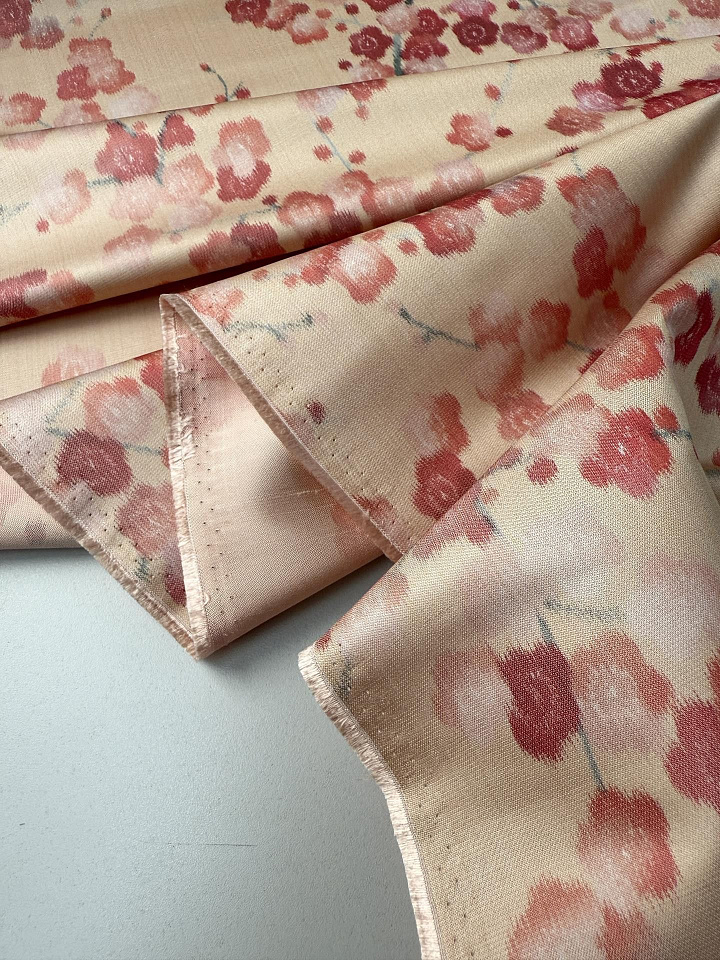 Тафта (н) красно-розовая цветочная абстракция на персиковом - цена 3 800 ₽ У нас самые доступные цены на Тафта, шантунг, муслин в Москве, доставка по всей России - интернет магазин тканей Тессутидея. Артикул товара для заказа - 10-4717. Страна производства ткани – Италия. Ширина этого материала - 150. Состав - Шелк 100%. Наличие остатков на складе - 2.6 м