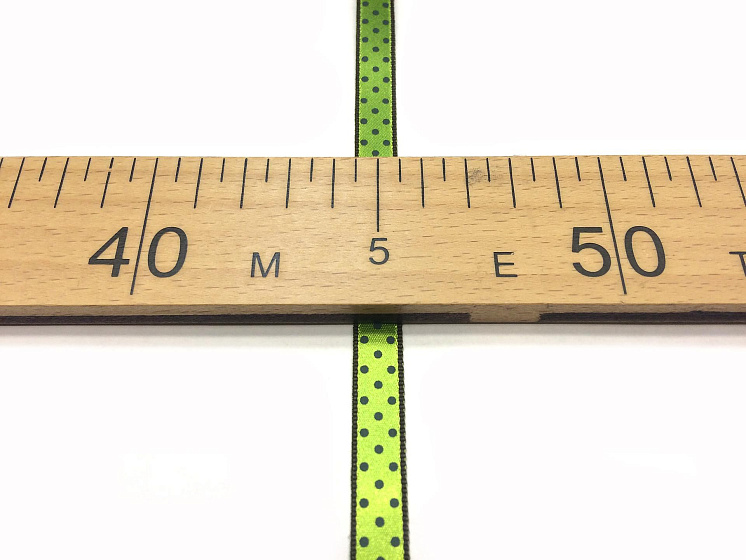 Тесьма атласная (н) синий горох на салатовом ш-1см Арт. F-3328