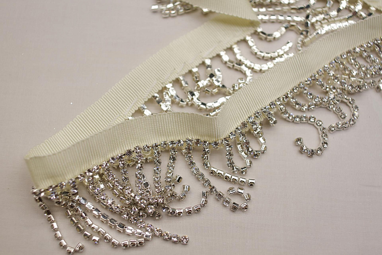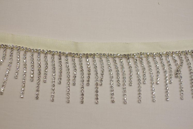 Тесьма бахрома из страз на репсовой ленте - цена 2 500 ₽ У нас самые доступные цены на в Москве, доставка по всей России - интернет магазин тканей Тессутидея. Артикул товара для заказа - F-6204. Страна производства ткани – Италия. Ширина этого материала - . Состав - . Наличие остатков на складе - 11.8 м