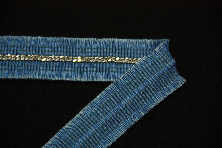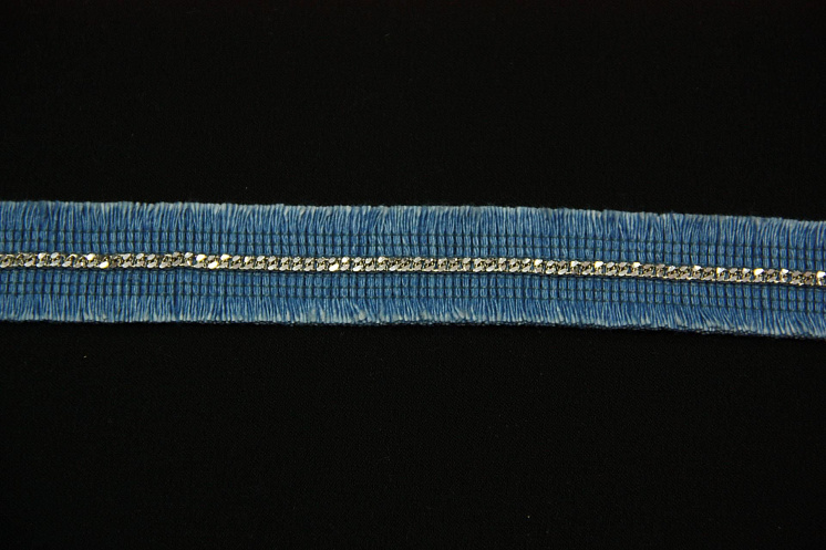 Тесьма джинсовая голубая с серебрянной цепью ш-2,5см Арт. 01-3269