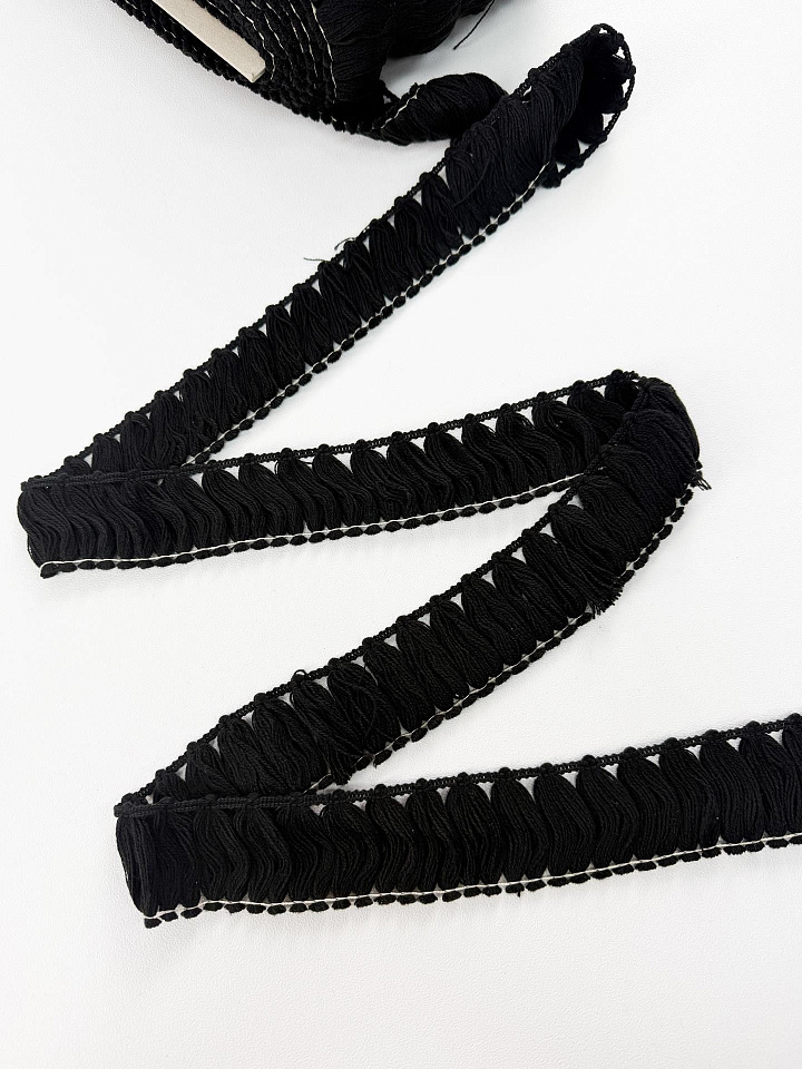 Тесьма с бахромой ш-5см черная - цена 400 ₽ У нас самые доступные цены на в Москве, доставка по всей России - интернет магазин тканей Тессутидея. Артикул товара для заказа - 03-7466. Страна производства ткани – Италия. Ширина этого материала - 5. Состав - Акрил 100%. Наличие остатков на складе - 50 м