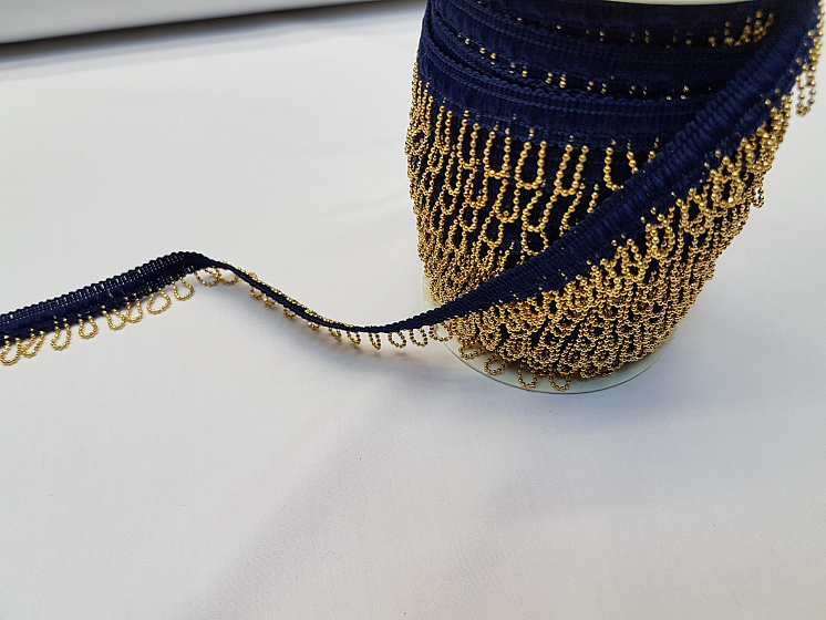 Тесьма с цепью сине-золотая ш-2см - цена 500 ₽ У нас самые доступные цены на Синтетические волокна в Москве, доставка по всей России - интернет магазин тканей Тессутидея. Артикул товара для заказа - F-3545. Страна производства ткани – Италия. Ширина этого материала - 2. Состав - . Наличие остатков на складе - 25 м