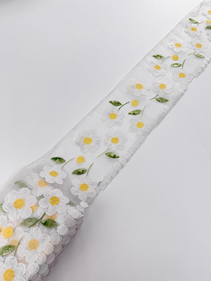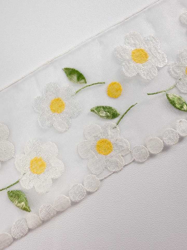 Тесьма с вышивкой (н) ромашки на белом ш-10см Арт. 03-2603