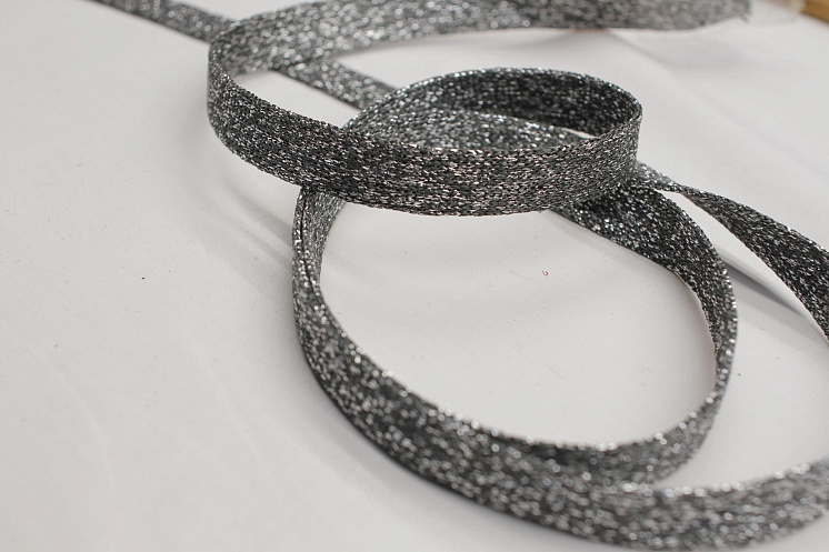 Тесьма трикотажная с люрексом (о) серая ш-1,3см Арт. F-6200