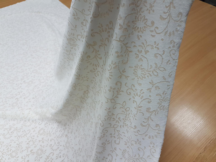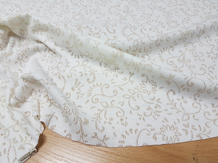 Трикотаж деворе (н) бежевый растительный орнамент на айвори - цена 1 400 ₽ У нас самые доступные цены на Трикотаж в Москве, доставка по всей России - интернет магазин тканей Тессутидея. Артикул товара для заказа - 13-1212. Страна производства ткани – Италия. Ширина этого материала - 130. Состав - Вискоза 65% полиамид 30% эластан 5%. Наличие остатков на складе - 8.8 м