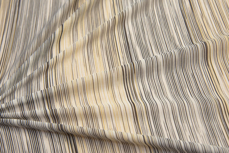 Трикотаж хлопок (н) желто-бежево-коричневая полоска в стиле Missoni - цена 2 200 ₽ У нас самые доступные цены на Трикотаж в Москве, доставка по всей России - интернет магазин тканей Тессутидея. Артикул товара для заказа - 12-0963. Страна производства ткани – Италия. Ширина этого материала - 170. Состав - Хлопок 100%. Наличие остатков на складе - 7.3 м