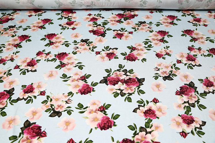 Трикотаж (н) цветочный орнамент на светло-голубом Арт. 12-0675