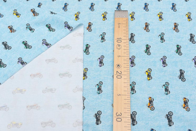 Трикотаж пике (н) мотоциклы на голубом меланже - цена 2 400 ₽ У нас самые доступные цены на в Москве, доставка по всей России - интернет магазин тканей Тессутидея. Артикул товара для заказа - 12-1115. Страна производства ткани – Италия. Ширина этого материала - 155. Состав - Хлопок 100%. Наличие остатков на складе - 3.8 м