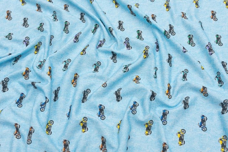 Трикотаж пике (н) мотоциклы на голубом меланже Арт. 12-1115