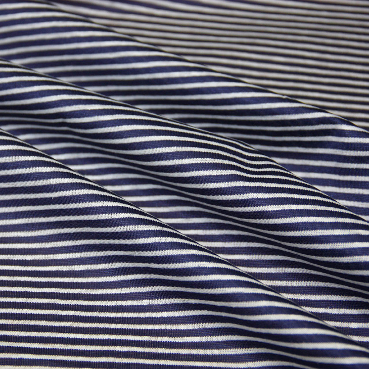 Трикотаж полоска (н) сине-белый - цена 1 100 ₽ У нас самые доступные цены на Трикотаж в Москве, доставка по всей России - интернет магазин тканей Тессутидея. Артикул товара для заказа - 14-1374. Страна производства ткани – Италия. Ширина этого материала - 140. Состав - Вискоза 95% эластан 5%. Наличие остатков на складе - 1.6 м