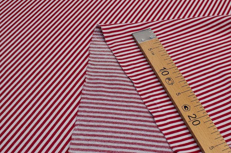 Трикотаж с люрексом (н) красно-бело-серебрянная полоска - цена 1 800 ₽ У нас самые доступные цены на Трикотаж в Москве, доставка по всей России - интернет магазин тканей Тессутидея. Артикул товара для заказа - 13-1412. Страна производства ткани – Италия. Ширина этого материала - 150. Состав - Вискоза 75% люрекс 20% эластан 5%. Наличие остатков на складе - 3.5 м