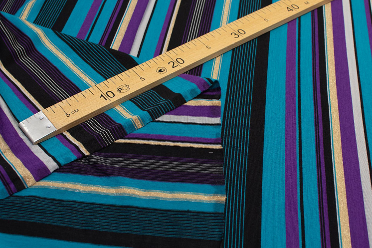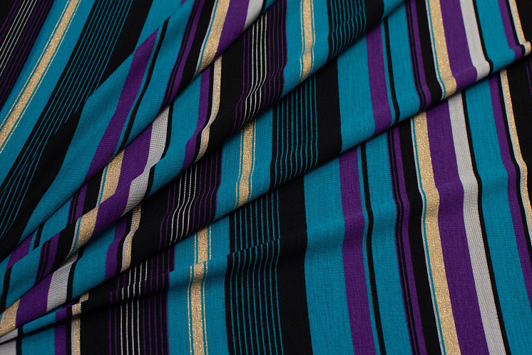 Трикотаж с люрексом (н) цветная полоска - цена 1 600 ₽ У нас самые доступные цены на Трикотаж в Москве, доставка по всей России - интернет магазин тканей Тессутидея. Артикул товара для заказа - 13-1411. Страна производства ткани – Италия. Ширина этого материала - 150. Состав - Ацетат 80% люрекс 10% эластан 10%. Наличие остатков на складе - 1.8 м