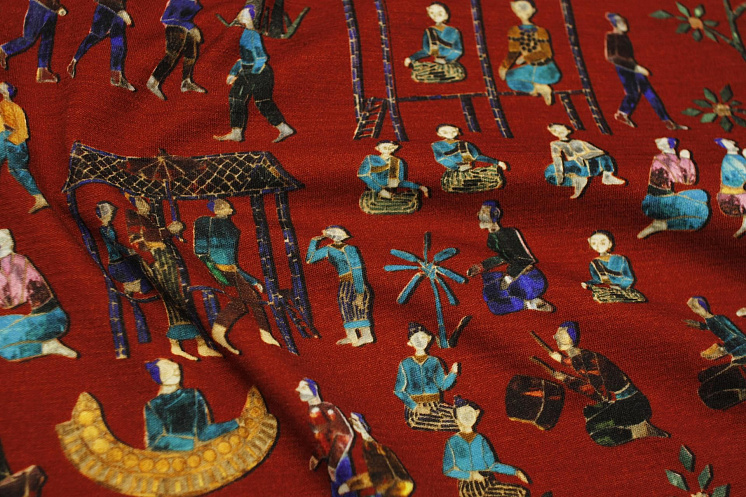 Трикотаж шерсть (н) люди на красно-коричневом - цена 4 200 ₽ У нас самые доступные цены на в Москве, доставка по всей России - интернет магазин тканей Тессутидея. Артикул товара для заказа - 15-1167. Страна производства ткани – Италия. Ширина этого материала - 135. Состав - Шерсть 92% эластан 8%. Наличие остатков на складе - 3.3 м