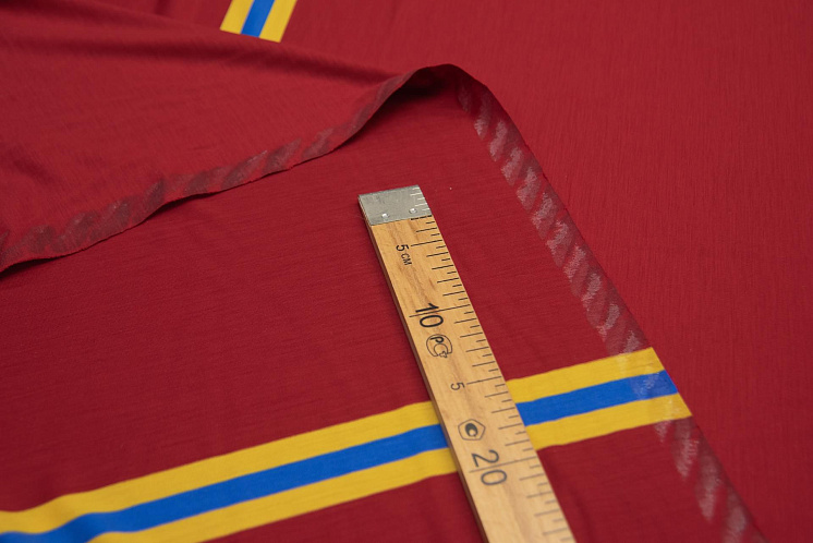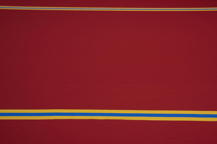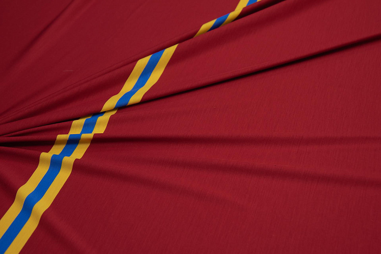 Трикотаж шерсть (н) сине-желтые полосы на темно-красном - цена 2 100 ₽ У нас самые доступные цены на Трикотаж в Москве, доставка по всей России - интернет магазин тканей Тессутидея. Артикул товара для заказа - 15-0993. Страна производства ткани – Италия. Ширина этого материала - 160. Состав - Шерсть 92% эластан 8%. Наличие остатков на складе - 2.5 м