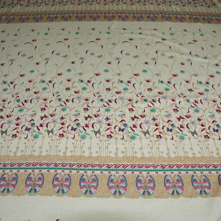 Трикотаж вискоза купон (0,85м) (н) бабочки и цветы на бежевом Арт. 14-1356