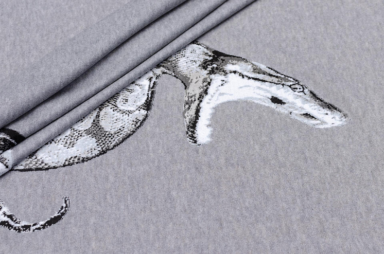 Трикотаж вискоза купон (2,3м) (н) змеи на сером - цена 1 400 ₽ У нас самые доступные цены на Трикотаж в Москве, доставка по всей России - интернет магазин тканей Тессутидея. Артикул товара для заказа - 14-1541. Страна производства ткани – Италия. Ширина этого материала - 150. Состав - Вискоза 95% эластан 5%. Наличие остатков на складе - 4.5 м